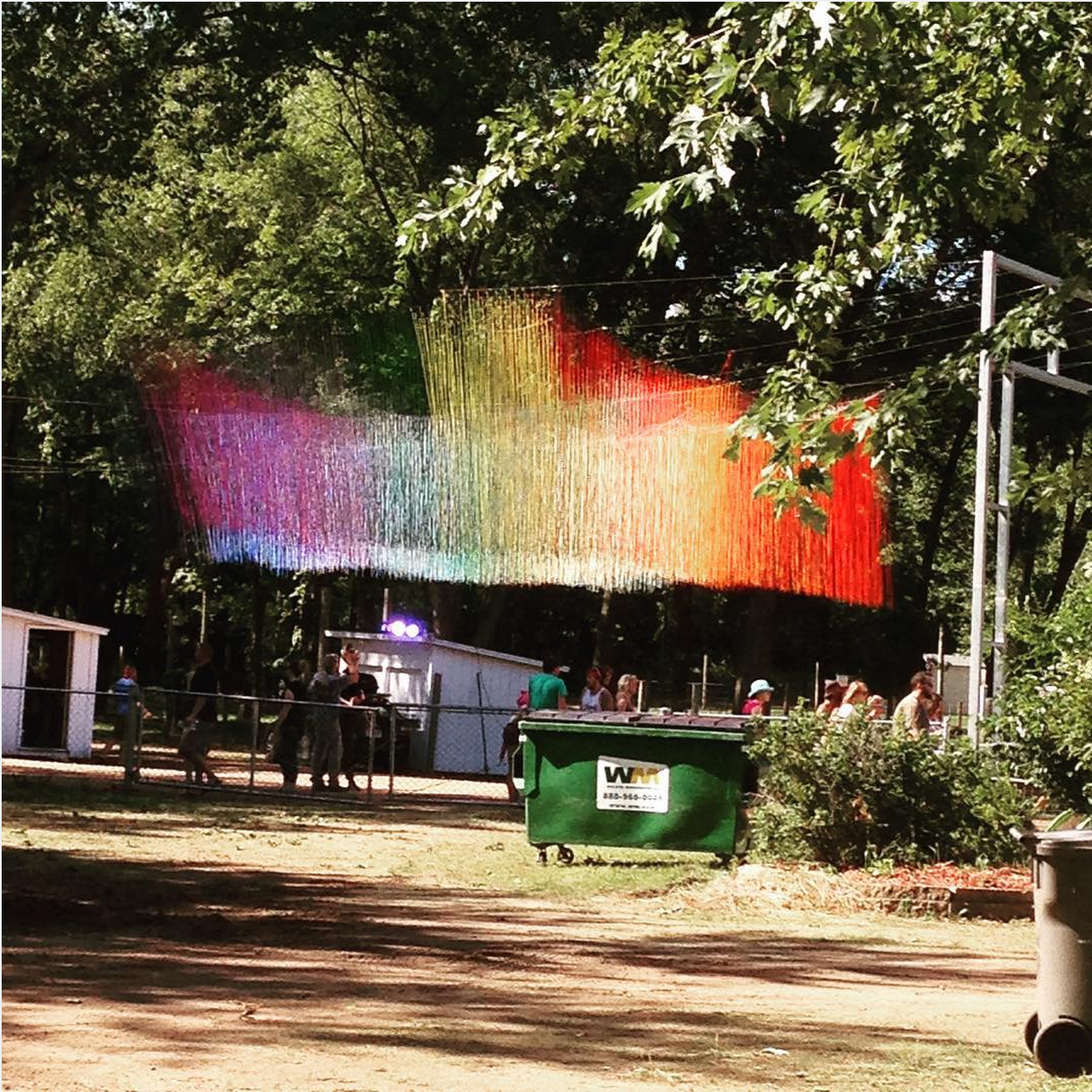 There were some great installations like the rainbow installation by Hot Tea at the entrance and the lights and windows on the trees that you could see through the paths between stages. And there were also art domes at the Eau Claire stage up top that had performance type art going on.
