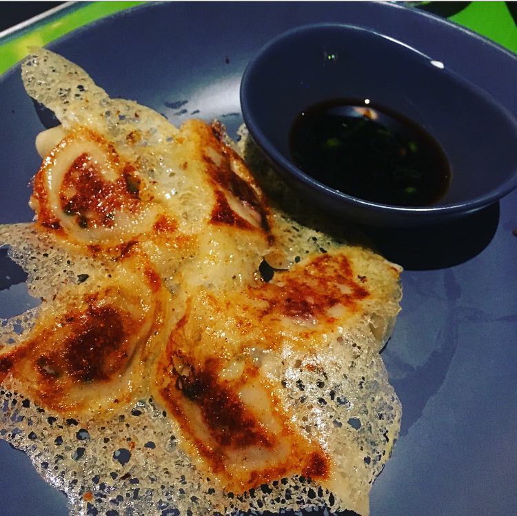 Pork Dumplings: Pan fried with a vinegar soy dipping sauce