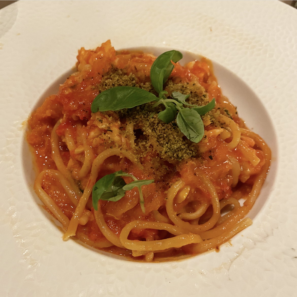 Bucatini: Lobster, Roasted Tomato, Lovage Breadcrumbs, Roe Butter, Espelette, Basil