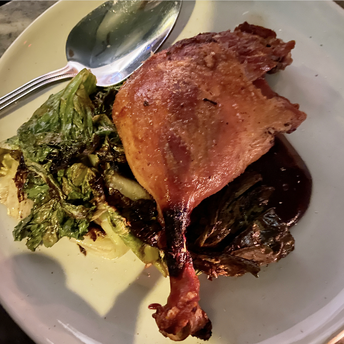 Duck Confit: Escarole, cherry mostarda, nutmeg