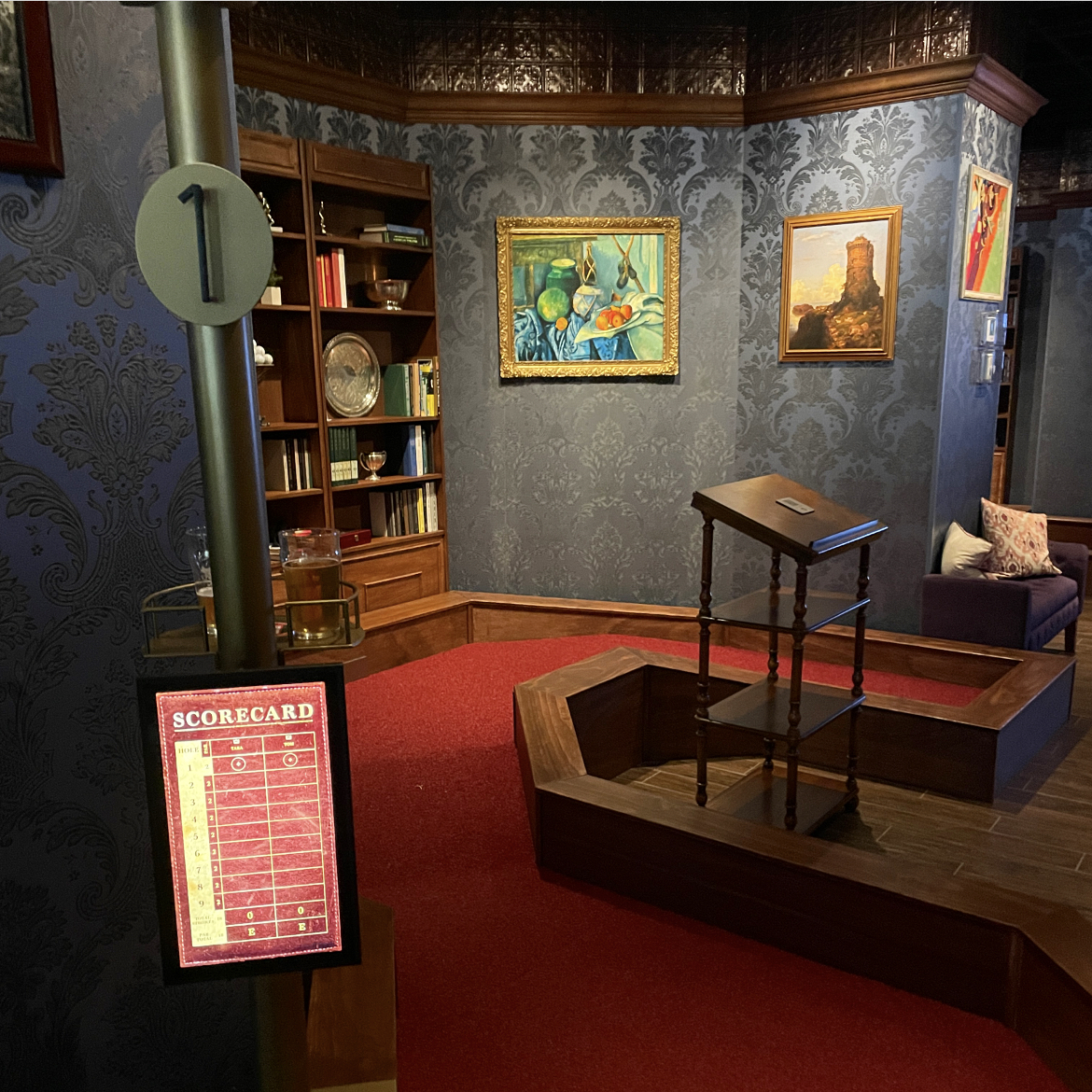 They do have a standard drink menu across the whole venue, but as I mentioned above while you’re putting on each course they have a themed cocktail menu that corresponds with the course. You access this menu through QR codes posted at each hole. I’m unsure how long this will be accurate, but here I’ll linked the Library cocktail menu that they used for us.