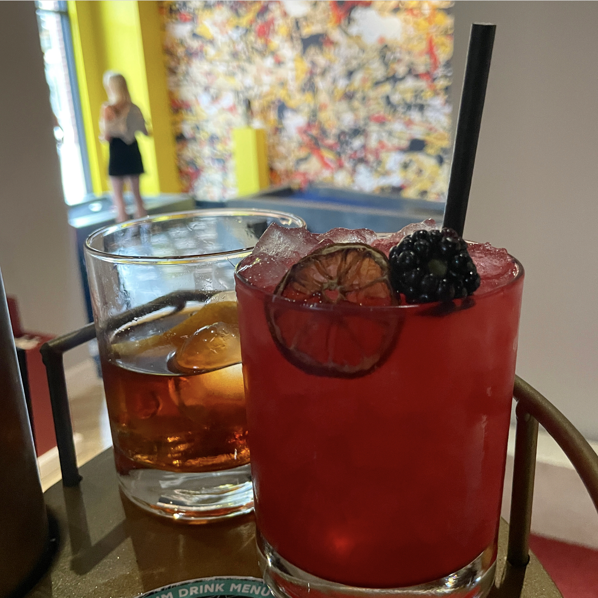 Art Museum Cocktails: Puttery Old Fashioned (Rye Whiskey, Bitters, Orange Oils) & Rumble (Rum, Blackberries, Lemon)