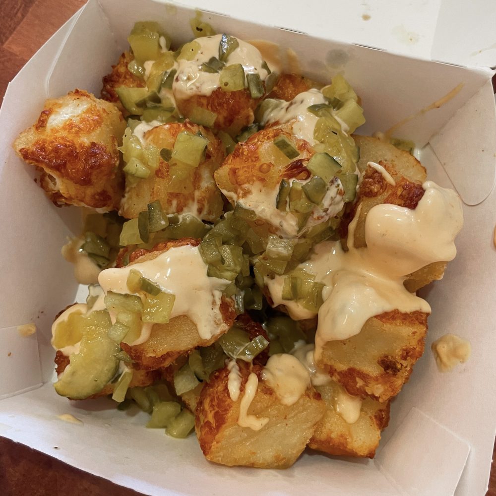 I hate leaving negative reviews because a lot of time taste is simply subjective, so I did want to share that although I did not enjoy this item, on my previous visit I tried the cheddar tots and really enjoyed them.