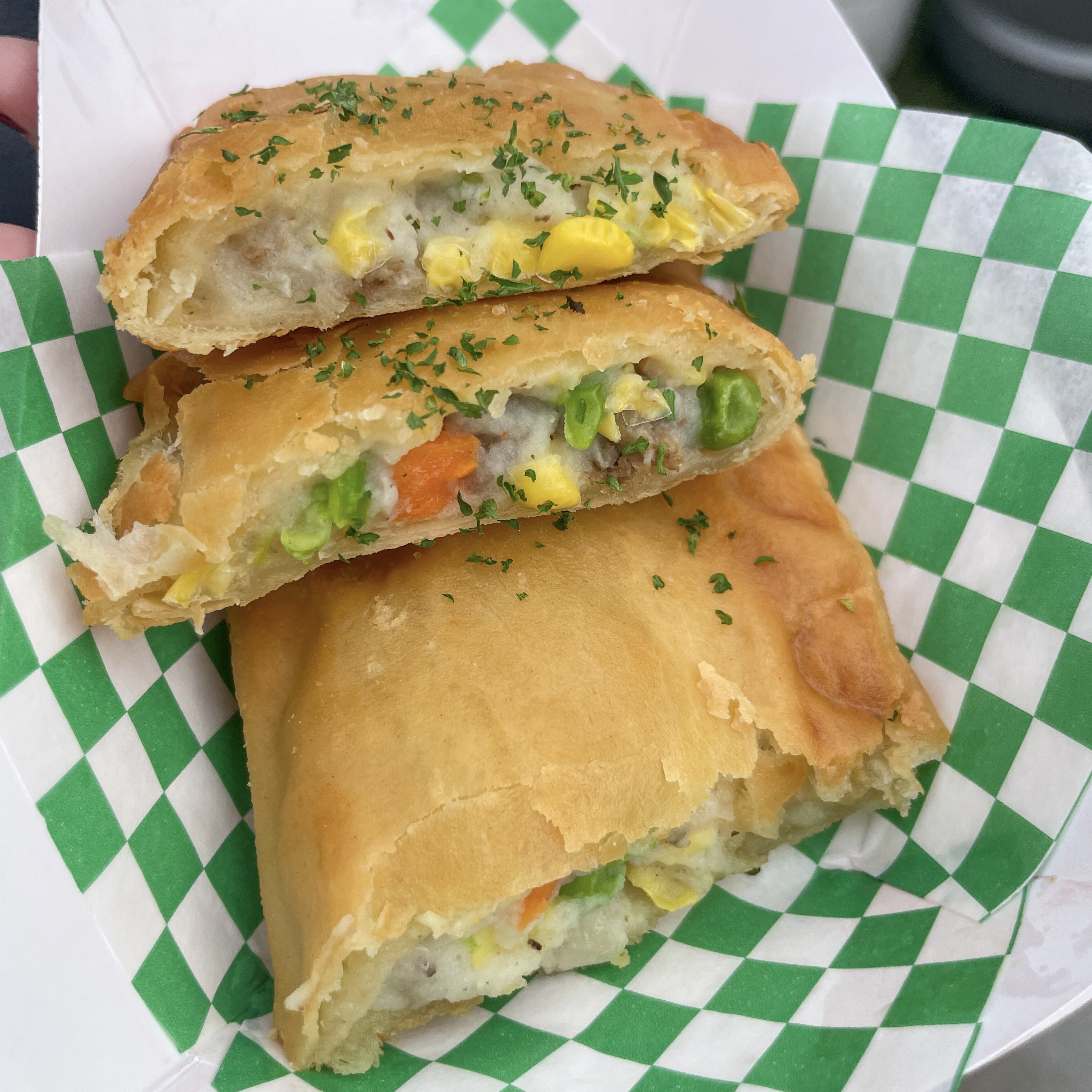 O’Gara’s Walking Shepard’s Pie: Two handmade hot pastries filled with braised ground beef, mashed potatoes and a blend of onions, carrots and peas tossed in herb gravy.