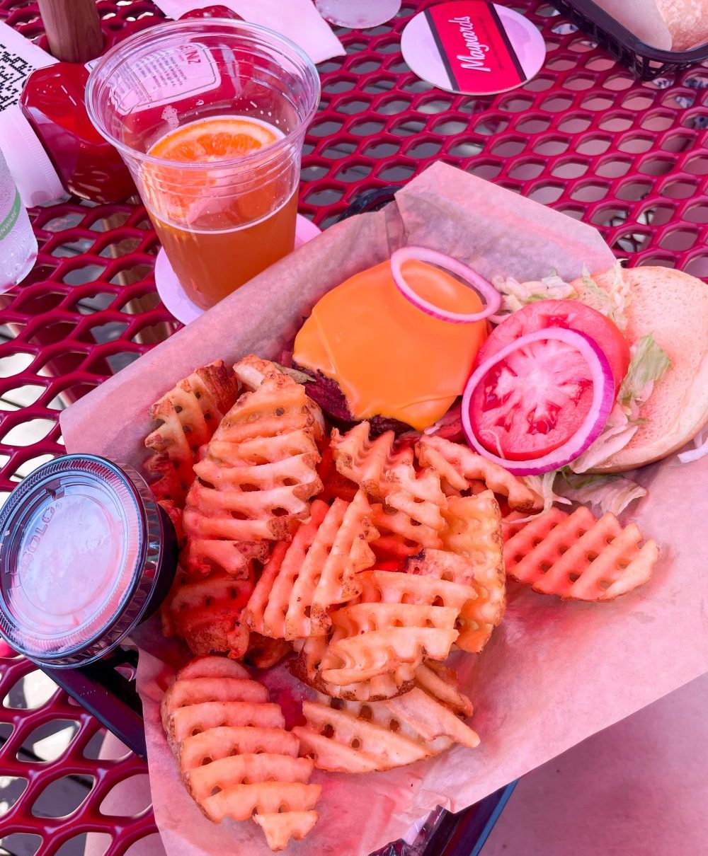 Cheeseburger with American Cheese, Waffle Fries & Seasoned Sour Cream