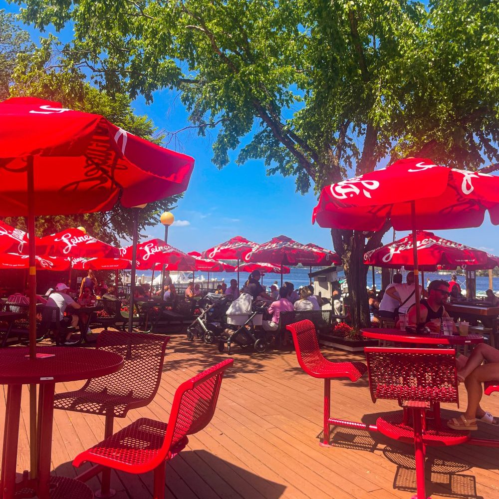 The patio is first come first served so we were lucky to find an open table with an umbrella to give us enough shade!