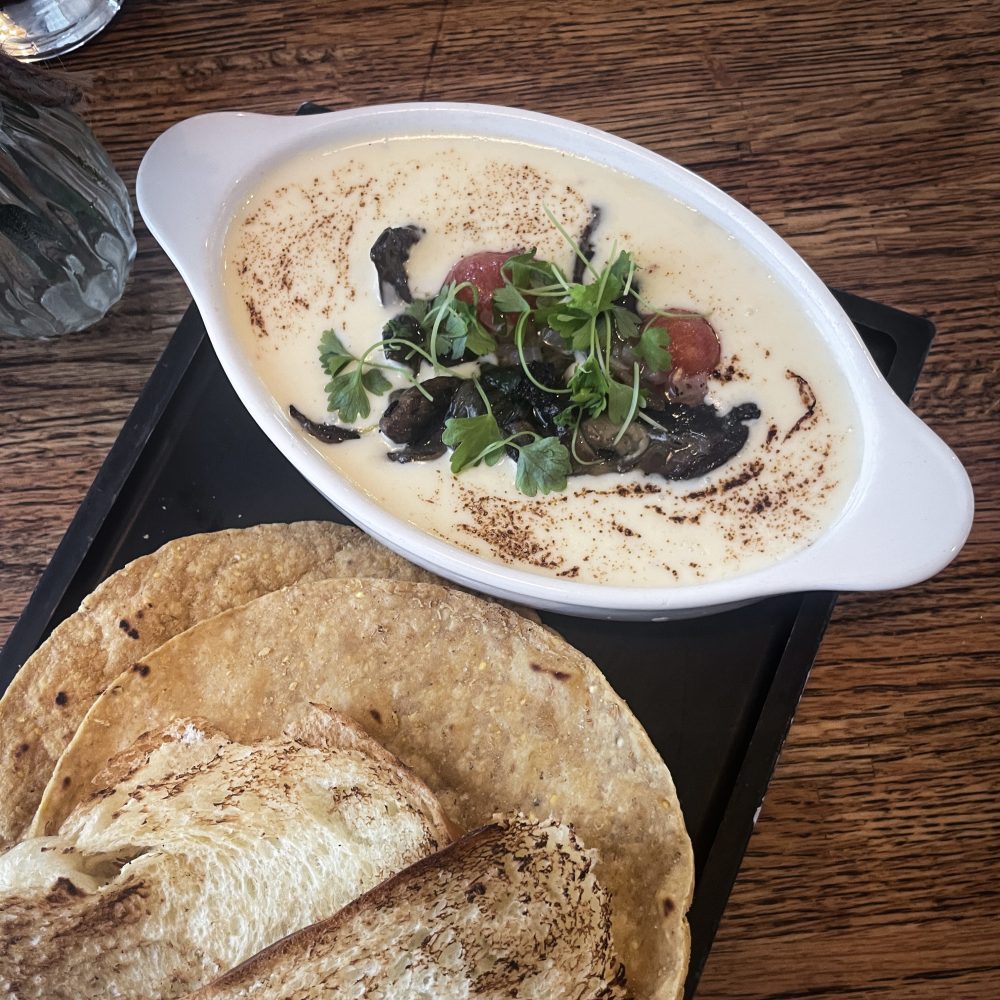 This queso fondue was delicious. I loved the mushroom addition. My only critique is that I’d rather they lose the bread and add another 1-2 tostadas. We had queso left over with nothing left to dip and the bread just wasn’t the vibe.